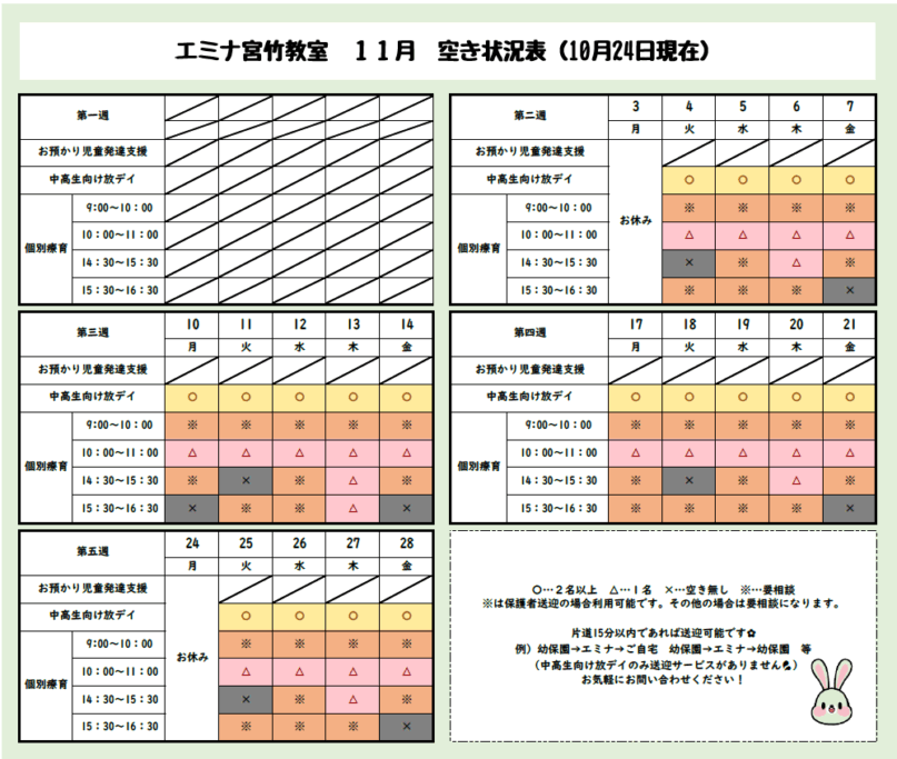 エミナ宮竹教室 11月の空き状況の更新です。