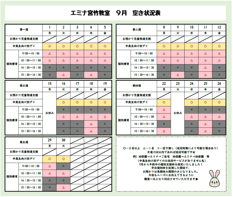 皆さんから頂戴したお声をもとに、9月から個別療育の時間を拡張いたしました!